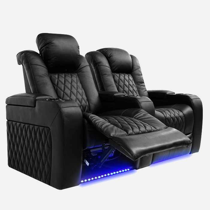 Choose from motorized, manual, or no reclining function for any style of home theater chair you prefer. The Valencia Premium line features the distinguished Leggett & Platt reclining mechanism, known around the world for its lifetime, comfort and unmatched ease of use. This mechanism is, at the forefront, about ergonomics, but the way we build our theater recliners, it also results in space-saving, wall-hugging home theater seating. So if your media room is shallow, you don’t necessarily have to forego the reclining function in your home theater seats.