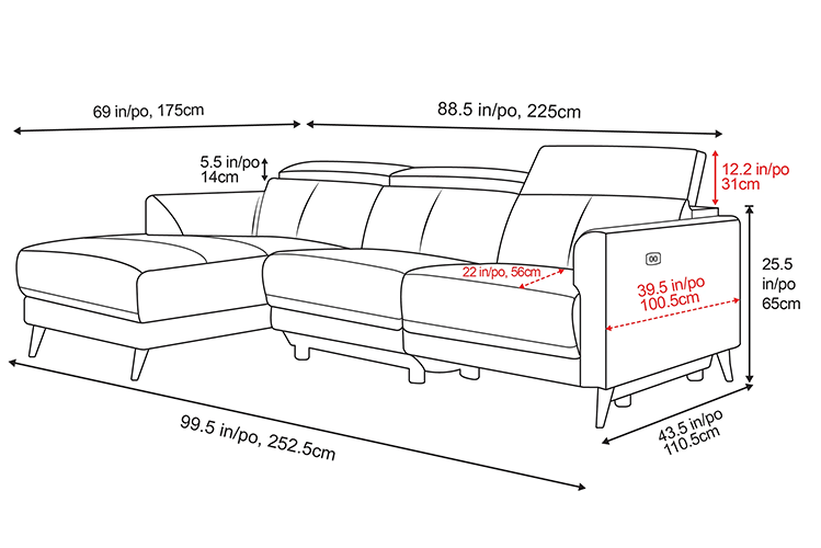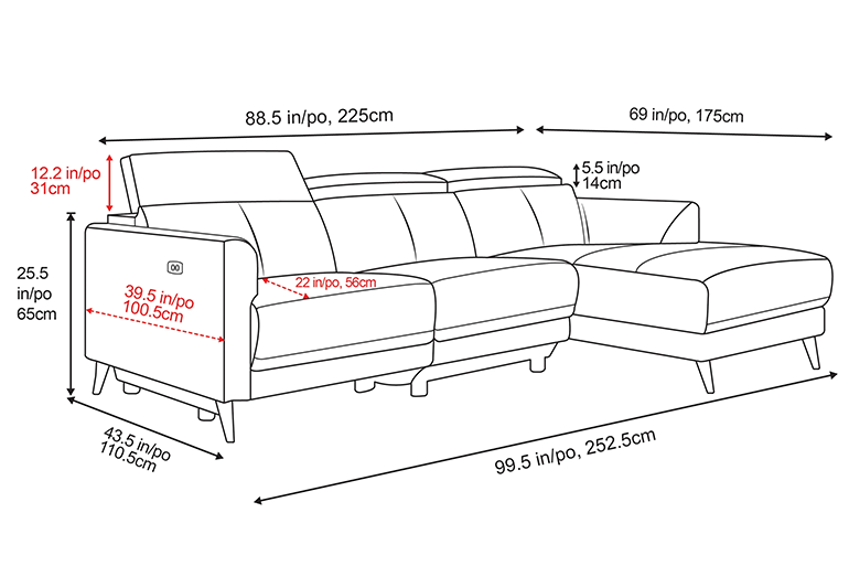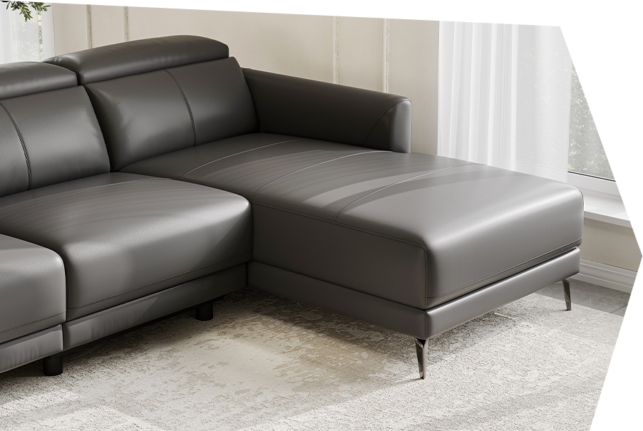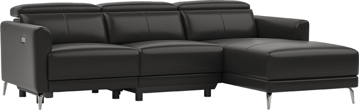 Its innovative design, featuring manual headrests, a power recliner and a spacious chaise ensures that every moment spent on this premium leather sofa is a testament to relaxation.