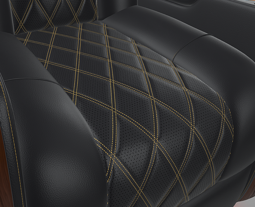 Custom Stitching Options: Now we’ll move onto our stitching options. You can keep the stitching standard OR you have the option to customize your theater chair to feature diamond stitching or French diamond stitching (double diamond). Also want perforated leather? We can do that! Not only does perforated leather give off similar vibes to that of a luxury car, it is also beneficial for material breathability. We particularly like perforated leather on the lumbar support of our home theater recliners for that breathability factor.