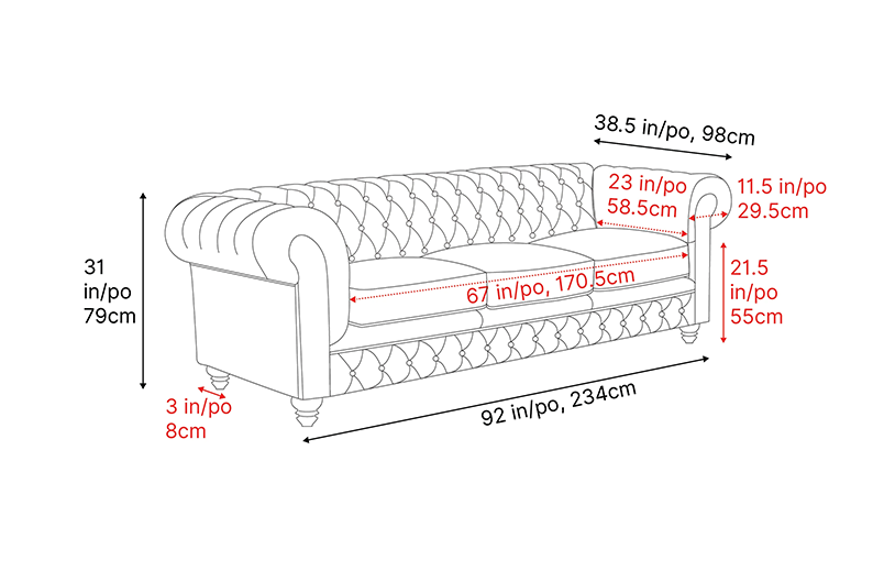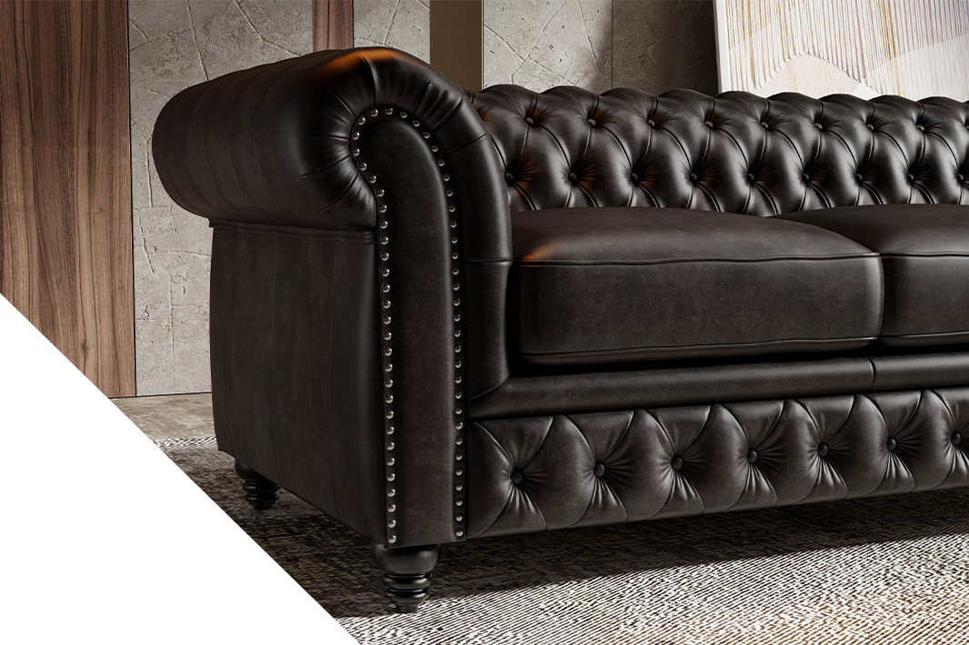 The Parma Chesterfield Sofa is a testament to excellence in craftsmanship. Every inch of this masterpiece is meticulously crafted, from the hand-tufted leather arms to the precisely detailed stitching. The result is a sofa that not only exudes timeless elegance but also guarantees durability and comfort that stand the test of time. Each element reflects the dedication to creating a piece that transcends mere furniture, becoming a statement of true craftsmanship and luxury in your living space