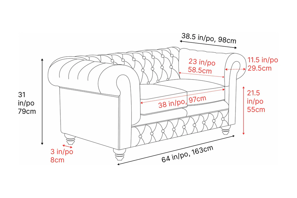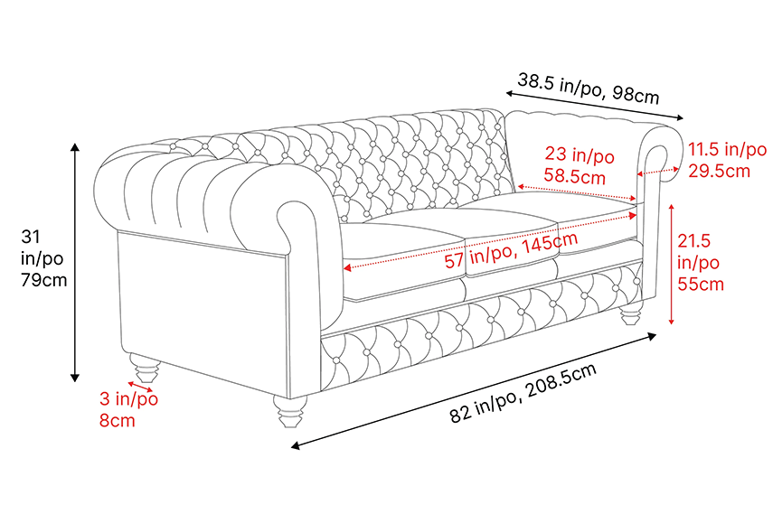 Parma Chesterfield’s tufted arms are a testament to its exquisite craftsmanship. Each meticulously placed button adds depth and character, showcasing a level of attention to detail that defines luxury. These tufted arms not only provide visual appeal but also offer a subtle contouring that enhances comfort. They elevate the Parma to a level of sophistication that speaks volumes about its refined design.