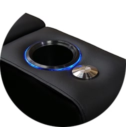 Built-in super-sleek LED cup holders with ambient soft glow, and a USB port is included in the Tactile Control System to charge your phones and tablets.