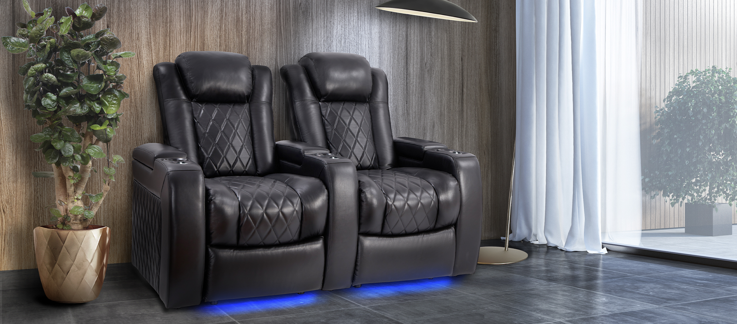 With LED cup-holders, ambient base lighting, premium Italian top grain Nappa leather 11000 on all seating surfaces, and motorized recliner mechanisms, Tuscany Slim seating allows you to experience your home theater the way you have never experienced it before.