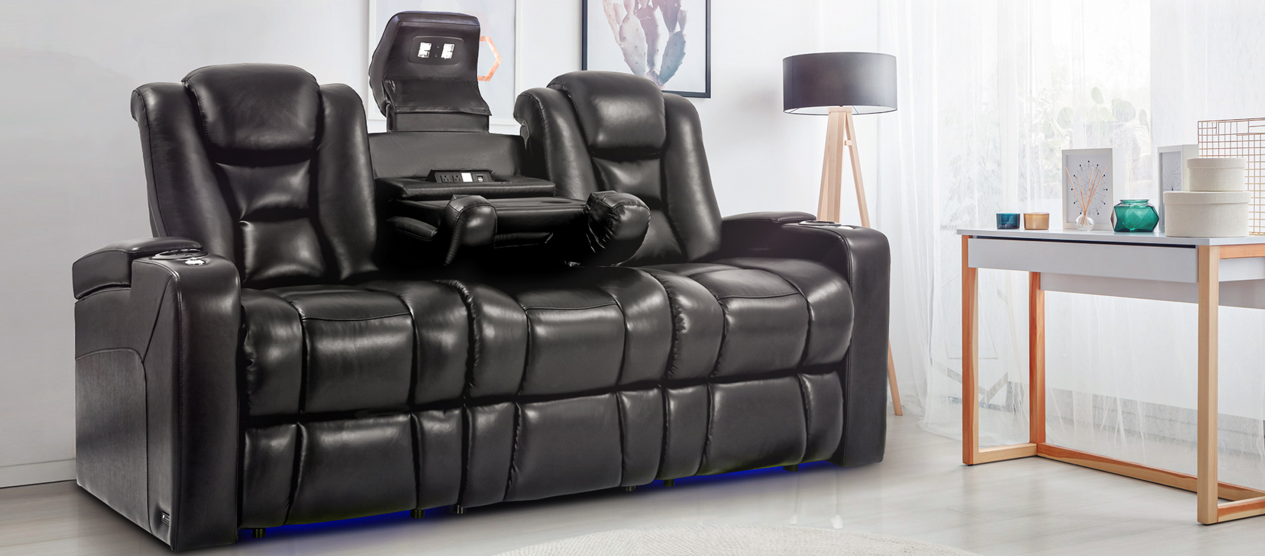 With a USB charging port, accessory mounting point, LED lights and motorized controls, always close at hand on your home theater seating, your next movie night doesn’t get much easier.