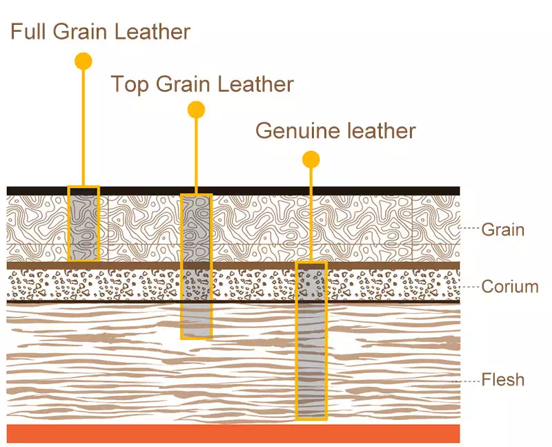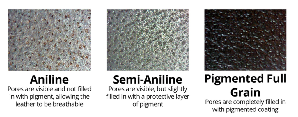 Top-grain and full-grain leather are the highest quality of leather that is sold. Both products when used are carefully-treated and delicately-used to preserve the visual appeal. The leather has not been buffed, sanded, scuffed or snuffed to remove any natural markings or imperfections from the surface.